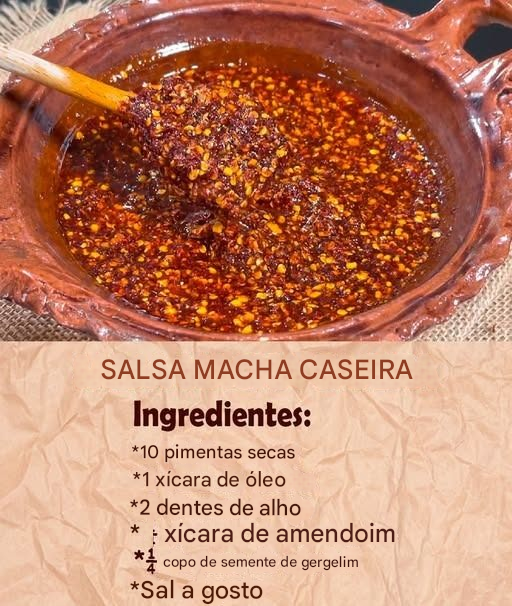 O nome « macha » não se refere a ser corajoso (embora possa parecer 😅), mas sim à forma como é preparada: esmagando pimentas secas e tostando-as com óleo, alho e, às vezes, amendoim ou sementes.